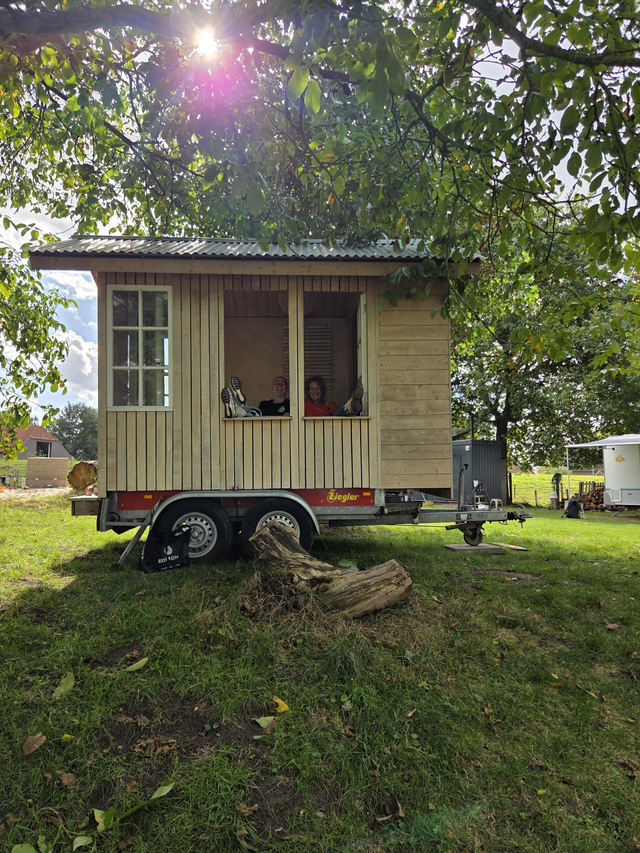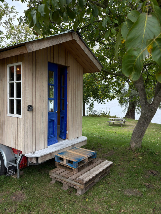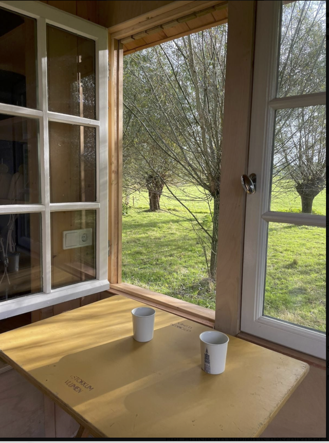 Een pracht exemplaar. Ze komt op de mooiste plekken. Nu staat ze pal aan de Maas, op minicamping Bokhoven. Als je haar boekt dan zetten ze de vuurschaal voor je klaar, en een hangmat als je wilt. Zo kun jij tijdelijk op een unieke locatie schrijven, bezinnen, ontspannen. Een plek die stoer, licht en knus is. Fijne vibe hangt er.